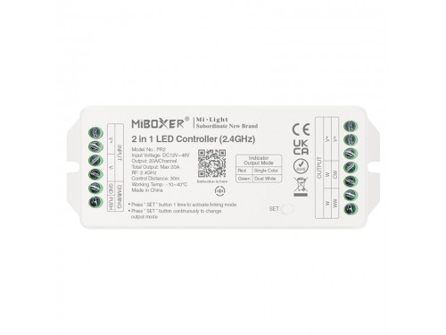 Primeren je za upravljanje različnih tipov LED trakov: enobarvni ali CCT. Način delovanja je možno izbirati s pritiskom na tipko na sprejemniku.