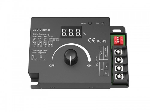 Zatemnilnik je primeren za vse enobarvne LED trakove, napetosti 12V ali 24V. Maksimalni tok, ki lahko teče skozi zatemnilnik, je 20A. Maksimalno dolžino LED trakov v naši ponudbi lahko preverite v tabeli spodaj:
